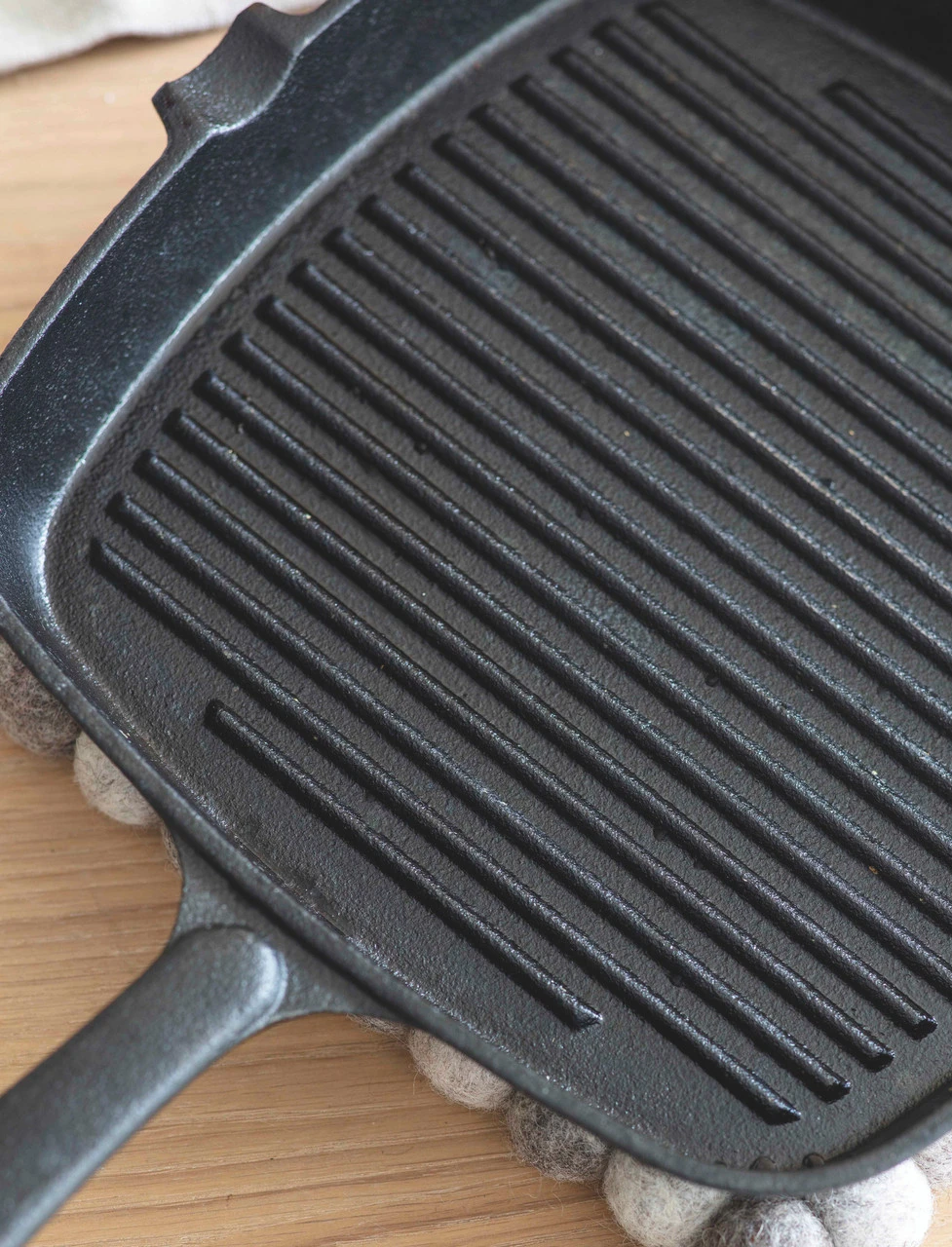 Cast iron remains hot long after use therefore always use protection when handling