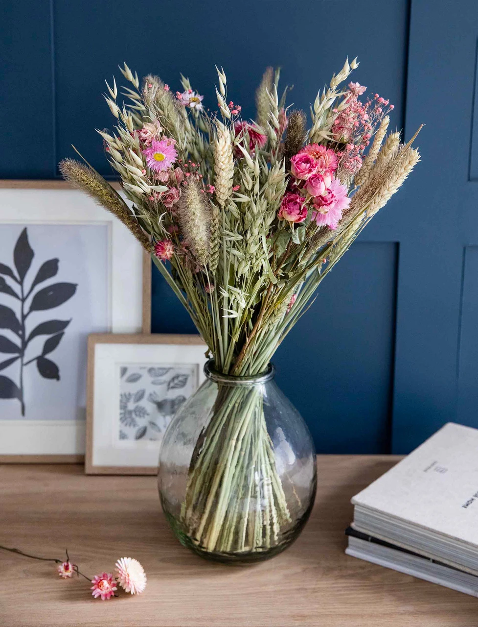 Features a selection of Oats, Spray Rose, Helichrysum, Gypsophila, Acrolinium, Setarea, Delphinium and Wheat stems